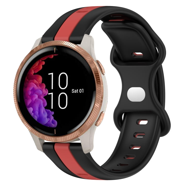 Correa de Reloj Garmin Venu Silicona Dos Colores Hebilla Mariposa 20mm (Negro + Rojo)