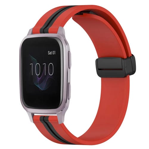 Correa de Silicona para Garmin Venu Sq 20mm con Cierre Magnético Plegable (Rojo + Negro)