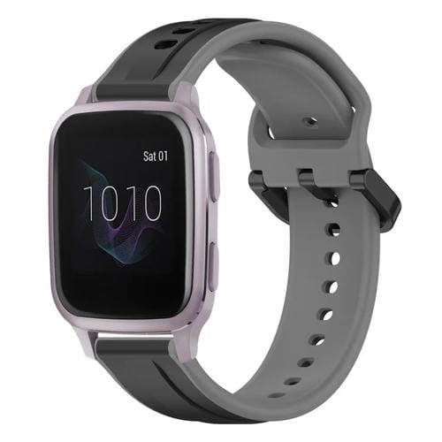 Correa de Silicona para Garmin Venu Sq 20mm Dos Colores con Bucle Convexo (Negro + Gris)