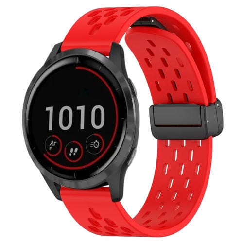 Para Garmin Vivoactive 4 Correa de Reloj de Silicona con Cierre Magnético Plegable de 22mm (Rojo)