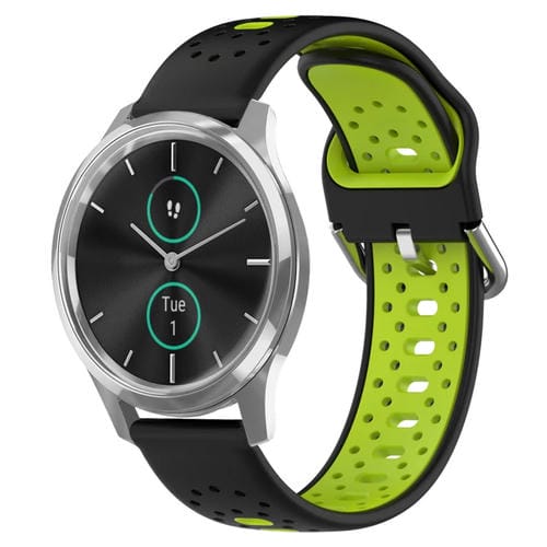 Correa de Reloj para Garmin Vivomove Luxe 20mm Silicona Transpirable Dos Colores (Negro + Verde Lima)