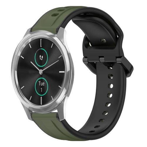 Correa de Silicona para Garmin Vivomove Luxe 20mm con Bucle Convexo (Verde Oscuro + Negro)