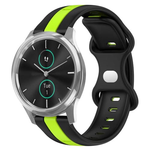 Correa para Garminmove Luxe 20mm con Hebilla de Mariposa en Silicona Dos Colores (Negro + Verde)