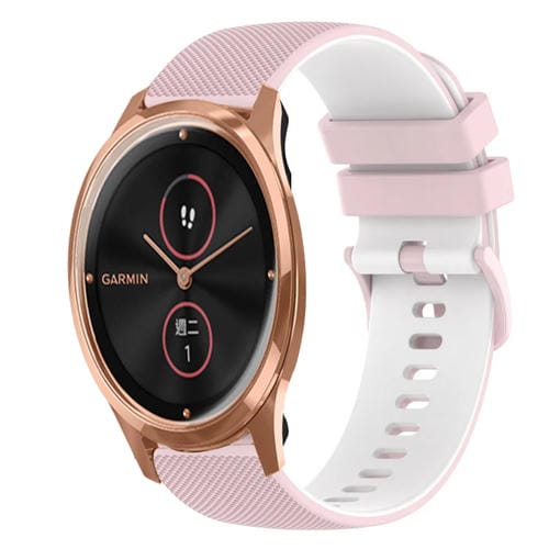 Correa de Silicona para Garminmove Luxe 20mm Dos Colores a Cuadros (Rosa + Blanco)