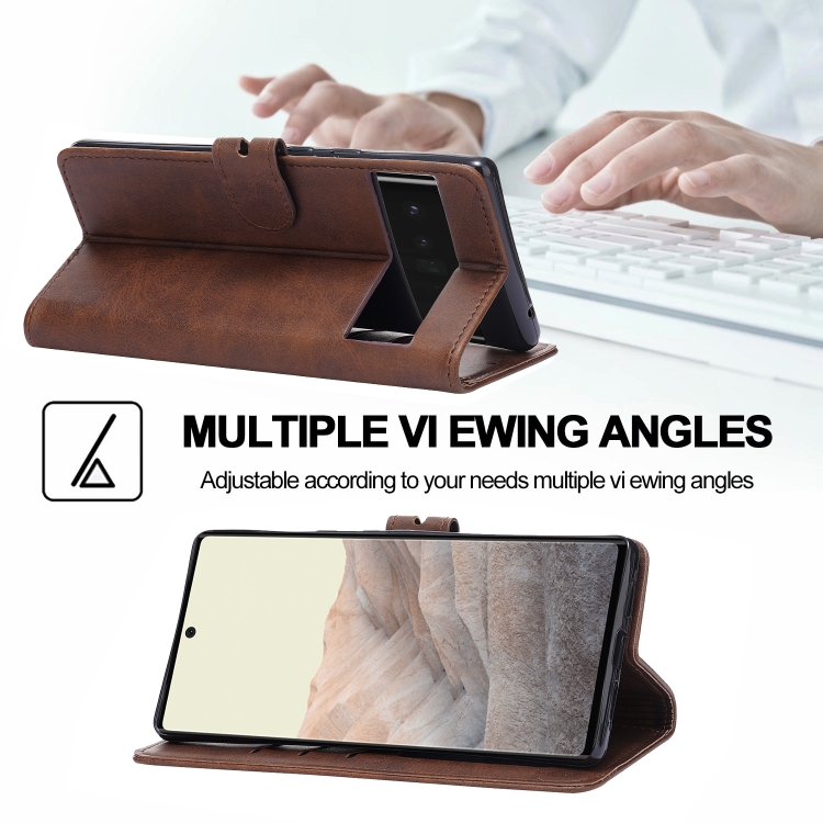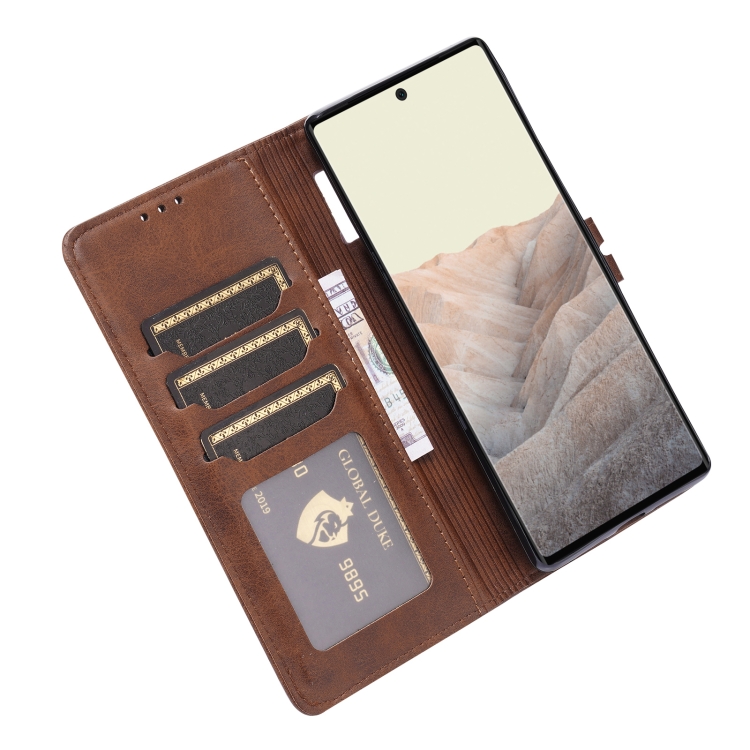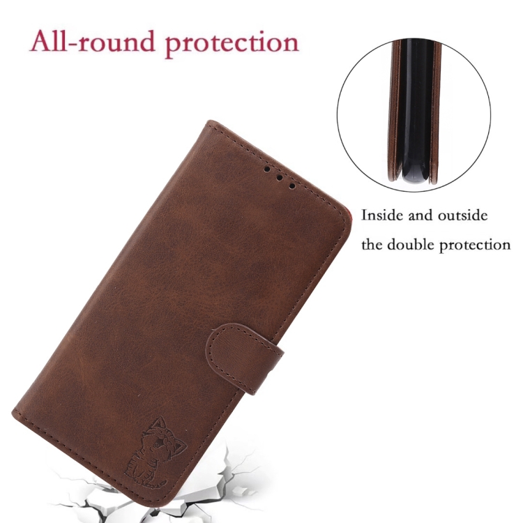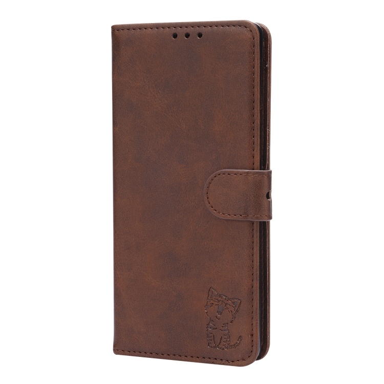 Funda para Google Pixel 7 Pro 5G Cuero Estampado Patrón Gato Feliz en Relieve (Marrón)