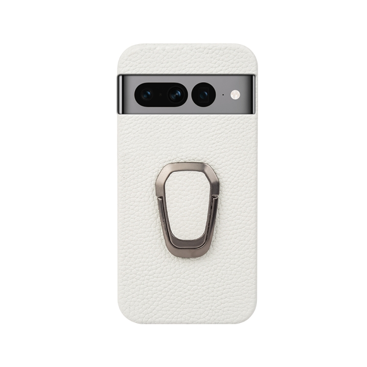 Funda de Cuero Genuino para Google Pixel 7 Pro con Ring Holder y Textura Litchi (Blanco)