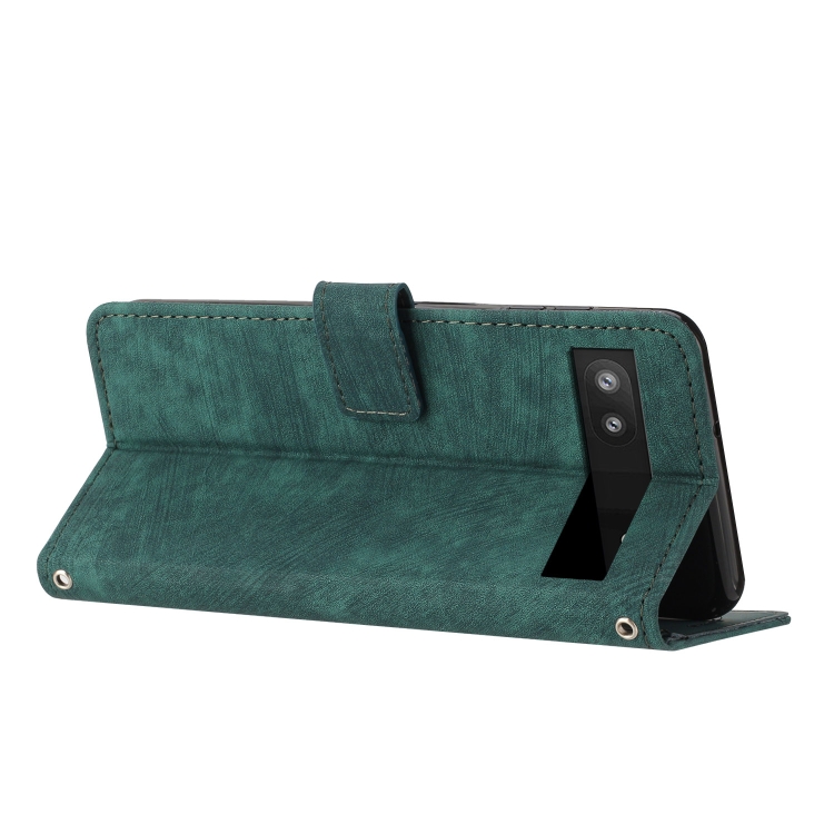 Funda de Cuero para Google Pixel 7A con Cordón y Skin Feel Stripe Pattern (Verde)