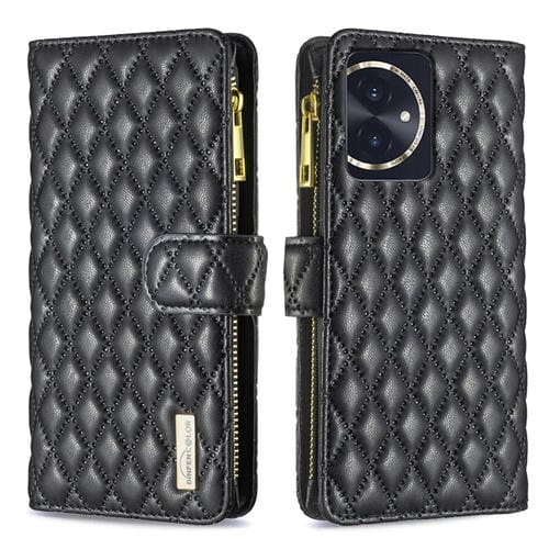 Funda de Cuero para Honor 100 Diamond Lattice Zipper Wallet con Tapa (Negro)