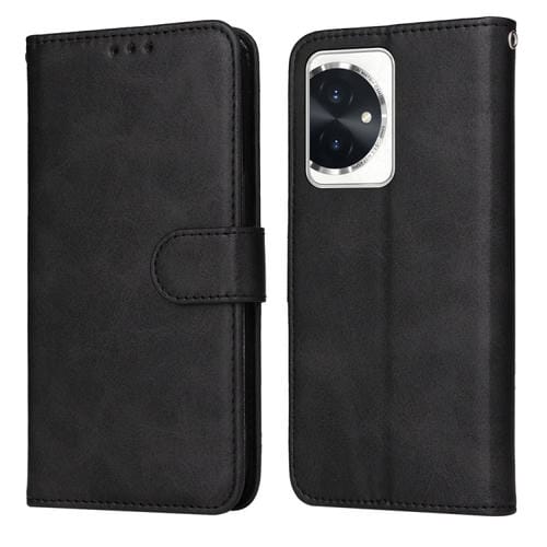 Funda para Teléfono Honor 100 de Cuero con Tapa Textura de Becerro (Negro)