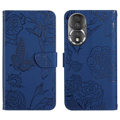 Funda de Cuero para Honor 80 HT03 Skin Feel Butterfly con Tapa en Relieve (Azul)