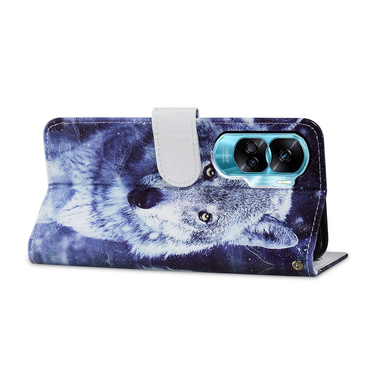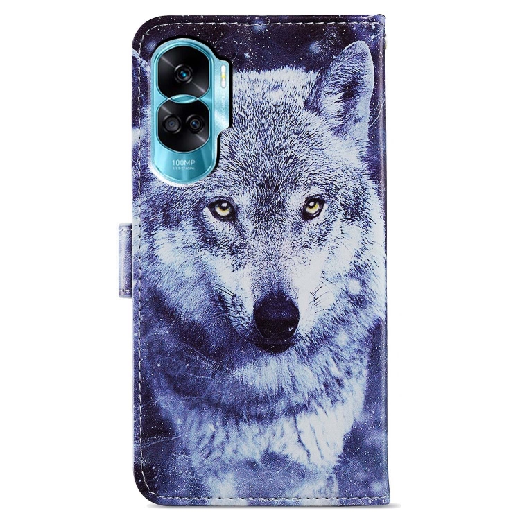 Funda para Honor 90 Lite de Cuero con Tapa Horizontal y Patrón Pintado (Lobo Blanco)