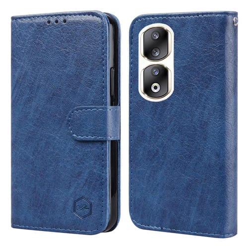 Funda para Honor 90 Pro Skin Feeling Oil Leather Texture PU + TPU (Azul Oscuro)