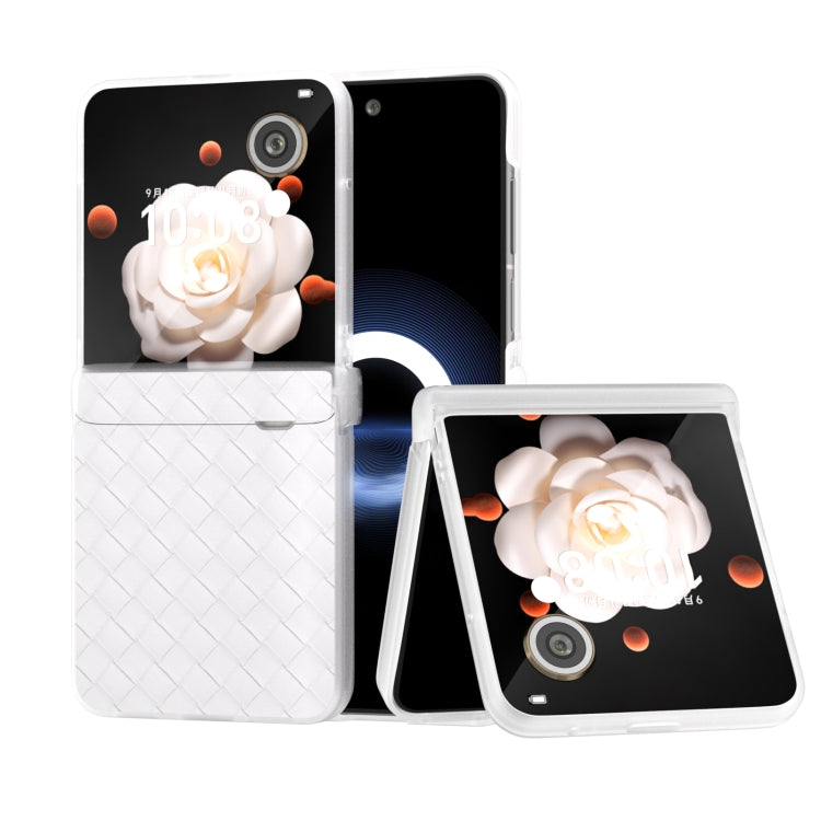 Estuche para Honor Magic V Flip de PU con Textura Tejida y Marco Translúcido Esmerilado (Blanco)