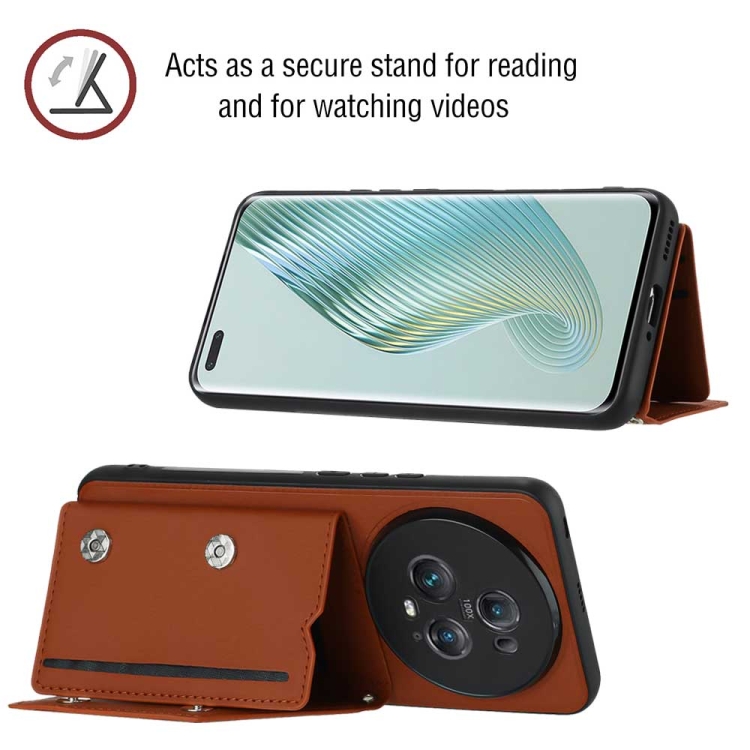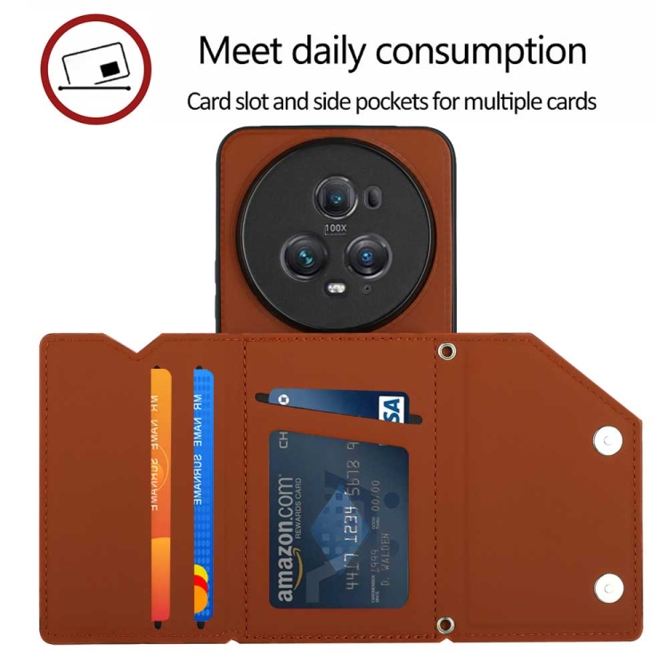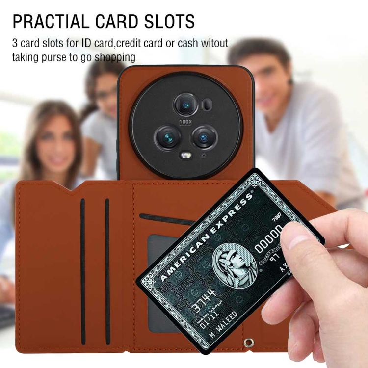 Funda para Honor Magic5 Pro Skin Feel PU + TPU con Ranuras para Tarjetas para PC (Marrón)