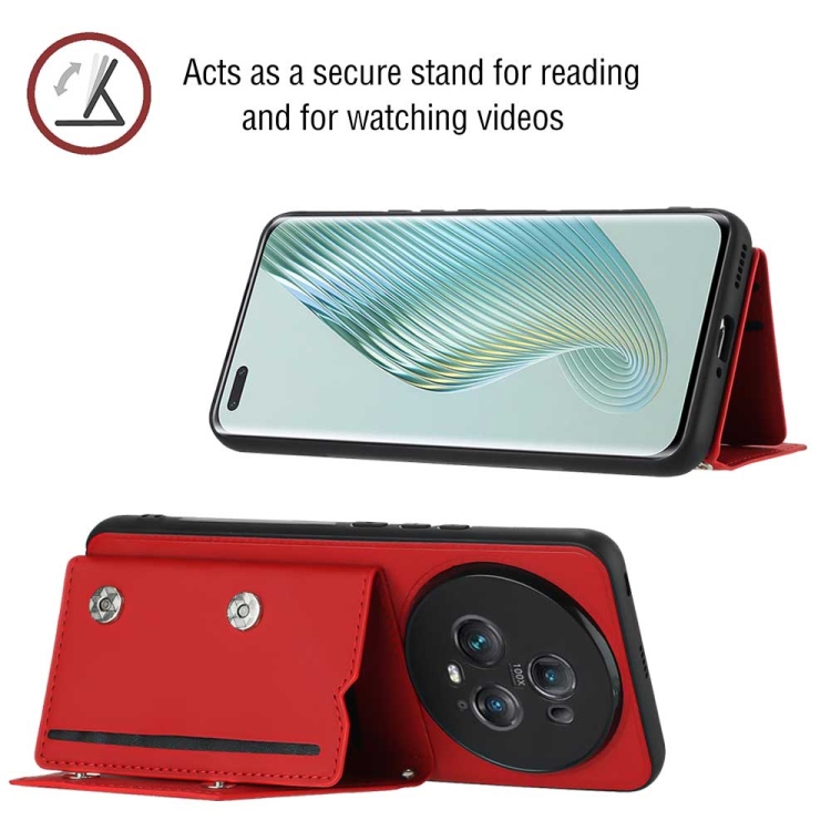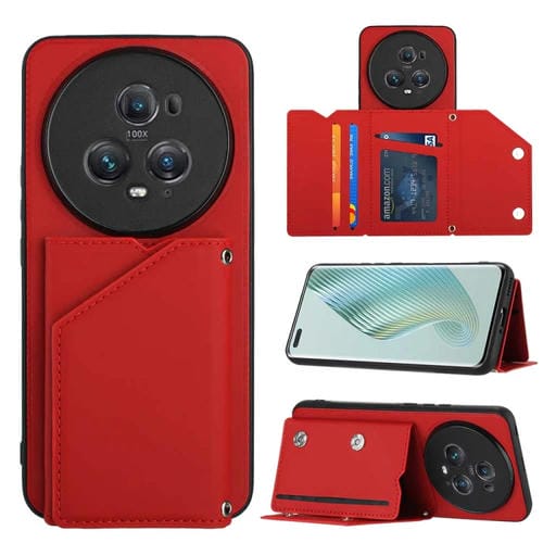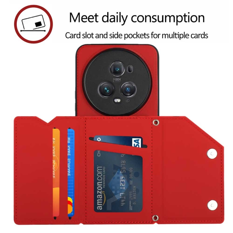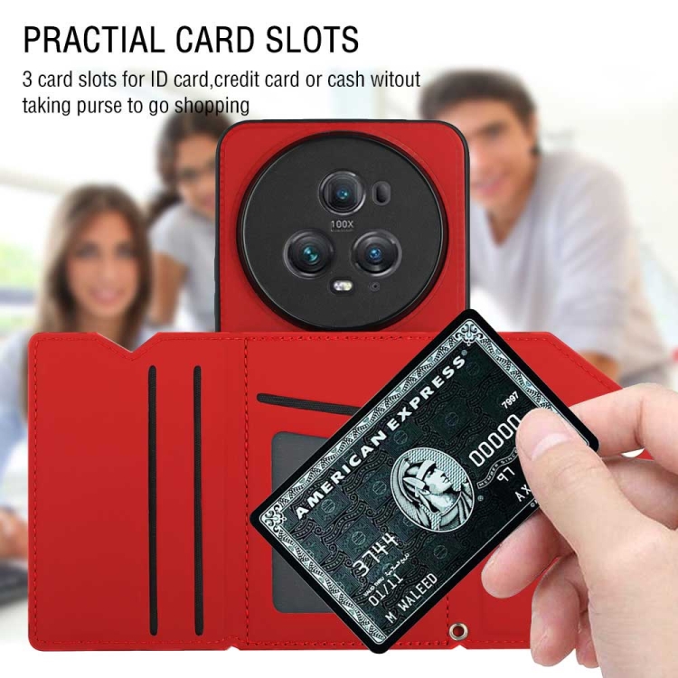 Funda para Honor Magic5 Pro Skin Feel PU + TPU con Ranuras para Tarjetas (Rojo)