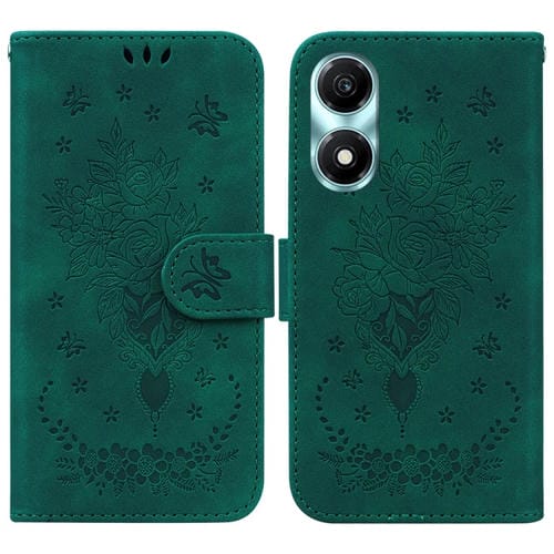 Funda para Teléfono Honor X5 Plus Play 40C Cuero con Relieve Mariposa y Rosa (Verde)