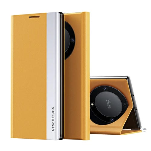 Funda de Cuero para Honor X50 con Adsorción Galvanizada Lateral (Amarillo)