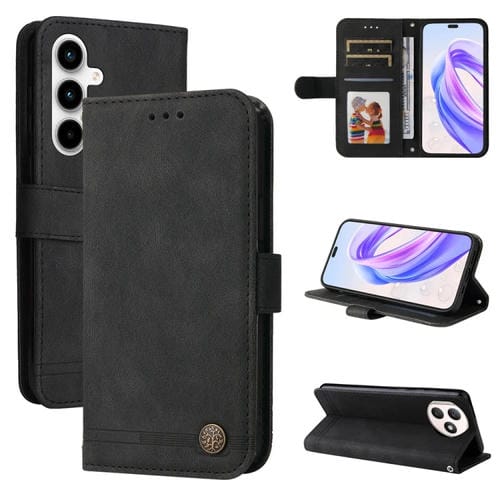 Funda de Cuero para Honor X50I con Botón de Metal + Skin Feel Life Tree (Negro)