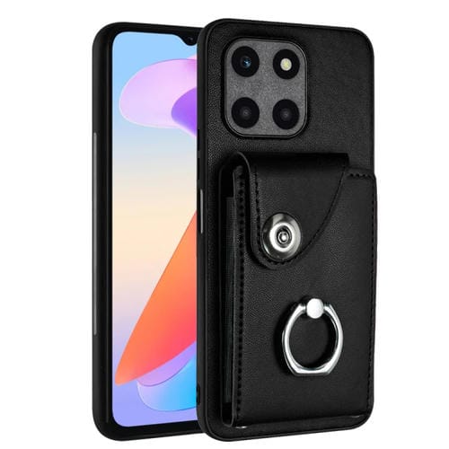Funda para Honor X6A de PU con Soporte para Anillo y Bolsa para Tarjeta (Negro)