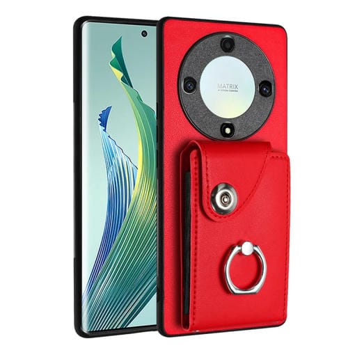 Funda para Honor X9A y Magic5 Lite de PU con Soporte para Anillo y Bolsa para Tarjeta (Rojo)