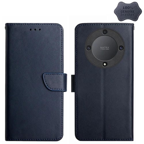 Funda para Teléfono Honor X9B Ht02 con Tapa de Cuero Genuino y Protección Antihuella (Azul)