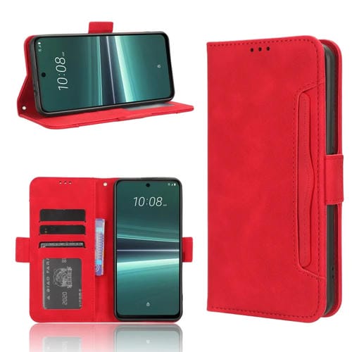 Funda de Cuero para HTC U23 y U23 Pro con Ranuras para Tarjetas (Rojo)