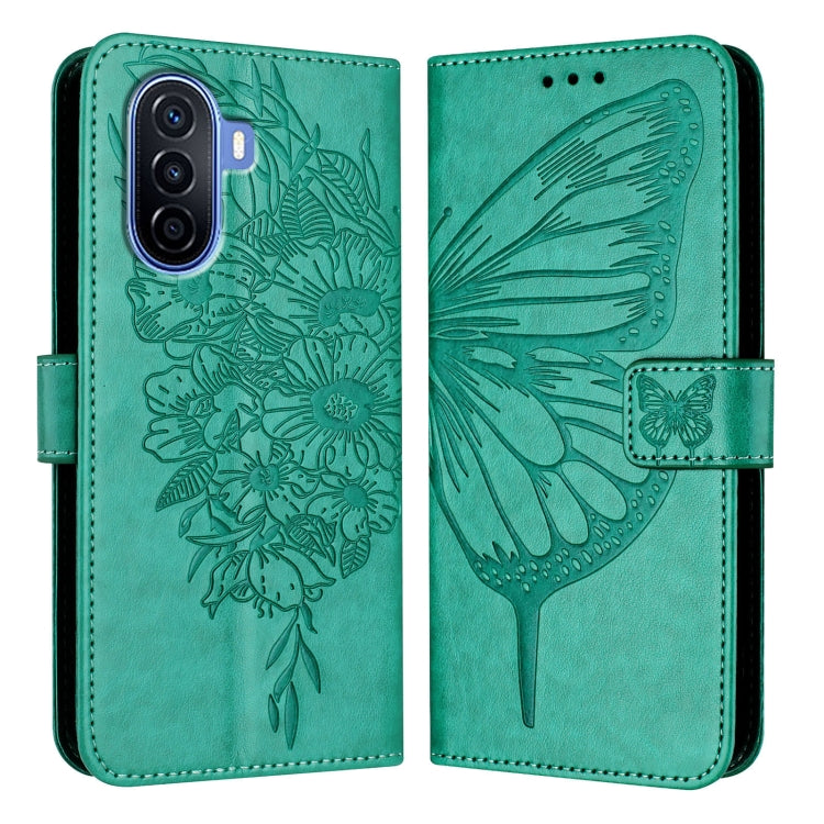 Funda de Cuero para Huawei Enjoy 50 4G y Nova Y70 Plus con Mariposa en Relieve (Verde)