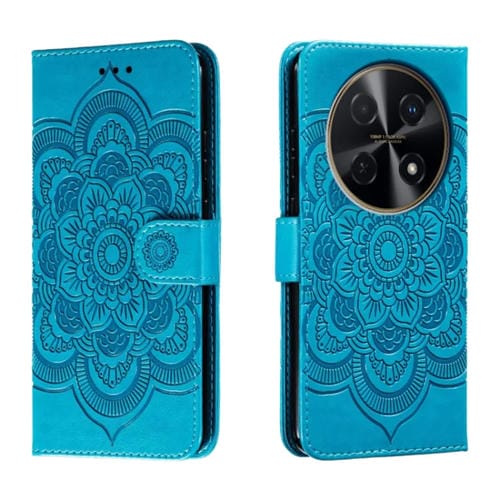 Funda de Cuero Huawei Enjoy 70 Pro con Patrón en Relieve Sun Mandala (Azul)
