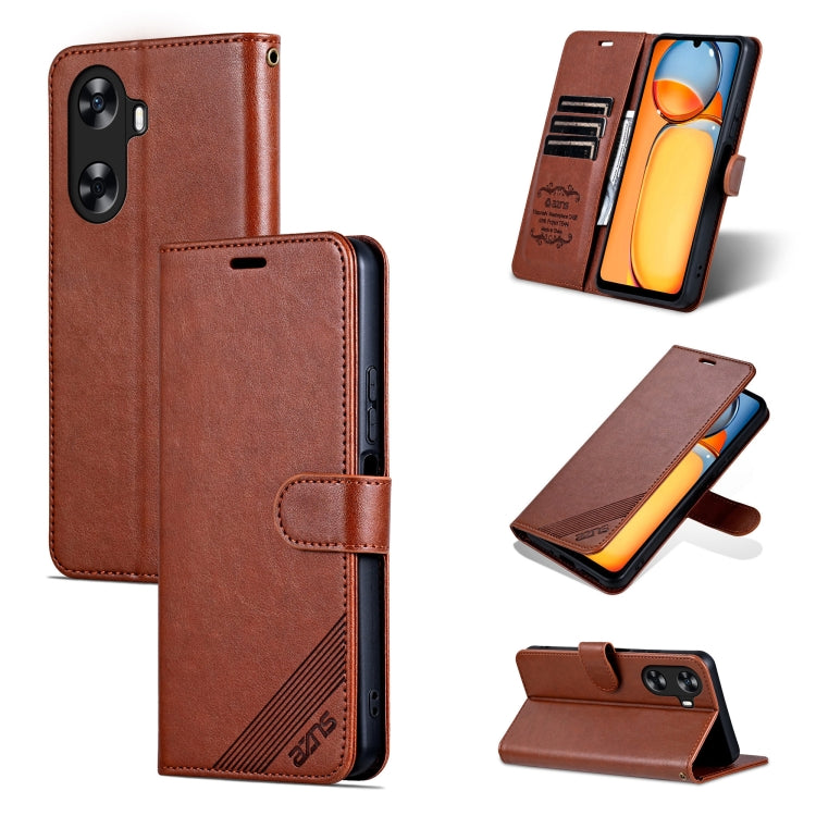 Funda para Huawei Enjoy 70Z Azns de Cuero con Tapa y Textura de Piel de Oveja (Marrón)