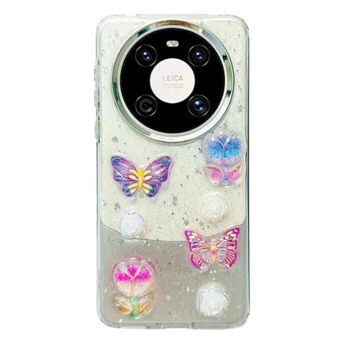 Estuche TPU para Huawei Mate 40 con Mariposas de Cristal Colorido Tridimensional (Flores de Mariposa)