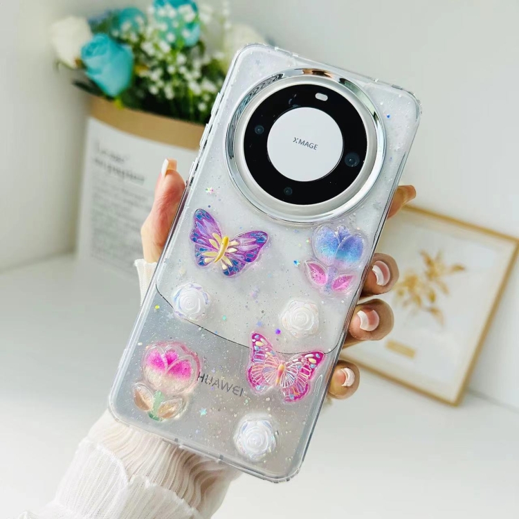 Estuche TPU para Huawei Mate 50 con Mariposas de Cristal Colorido Tridimensional (Flores de Mariposa)