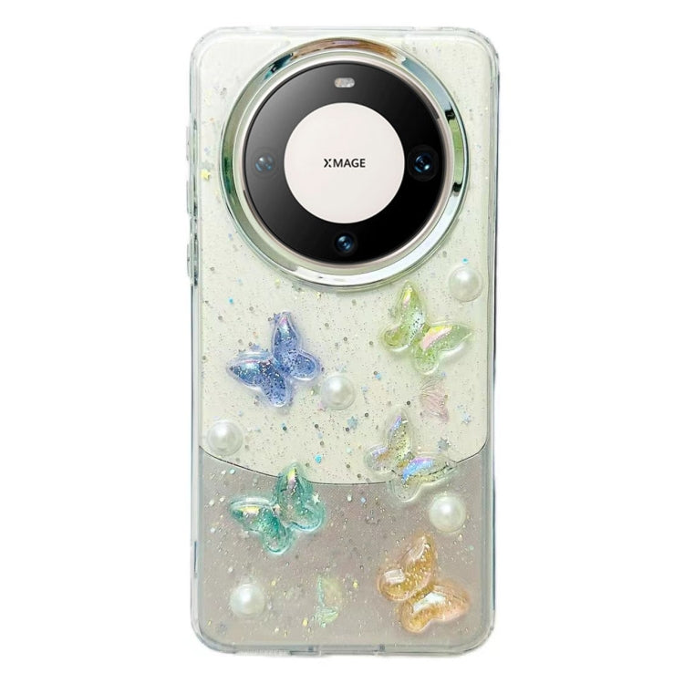 Estuche para Huawei Mate 60 TPU con Mariposa de Cristal Colorido Tridimensional (Mariposa Perla)
