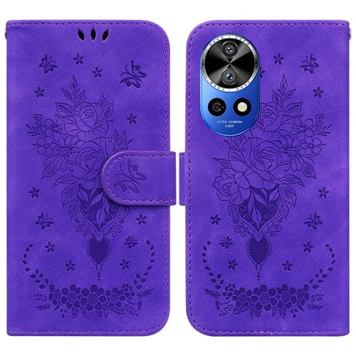 - 1x Funda para Huawei Nova 12 Pro y Nova 12 Ultra de Cuero con Relieve Mariposa y Rosa (Púrpura)
