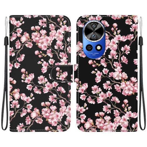 • 1x Funda de Cuero para Huawei Nova 12 Ultra con Dibujo Coloreado Flor de Ciruelo Crystal Texture
