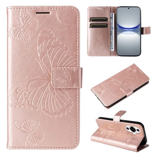 Funda para Huawei Nova 12S de Cuero con Tapa y Patrón en Relieve Mariposa 3D (Oro Rosa)