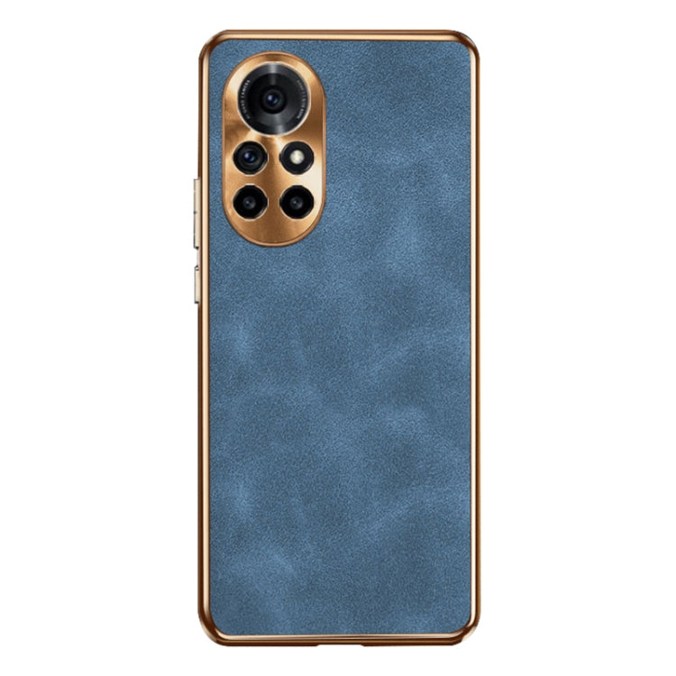 Funda de Cuero Piel de Cordero Galvanizada para Huawei Nova 8 Pro (Azul)