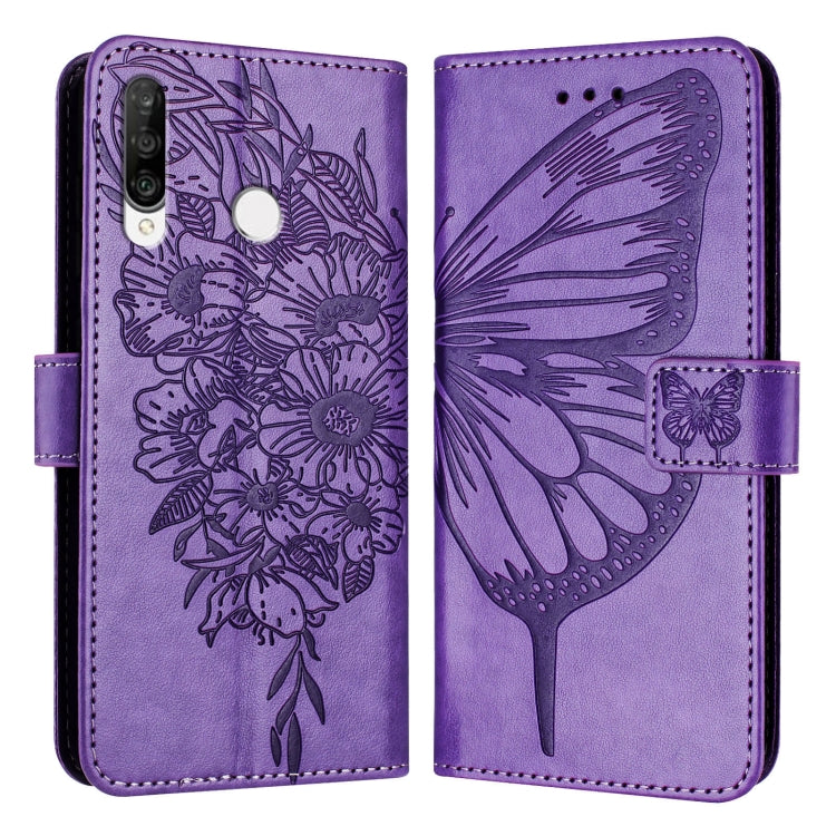 Funda de Cuero para Huawei P30 Lite / Nova 4E con Mariposa en Relieve (Púrpura)