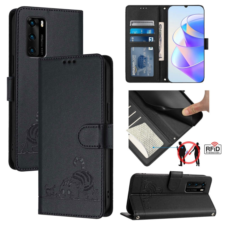Funda para Huawei P40 Cuero Rfid con Patrón en Relieve y Cordón (Negro)