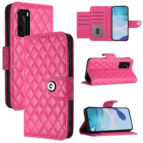 - 1x Funda de Cuero para Huawei P40 con Tapa textura rómbica y cordón (Rojo Rosa)