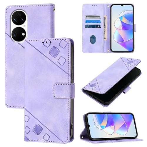 Funda de Cuero Skin Feel para Huawei P50 Pro en Relieve (Púrpura Claro)
