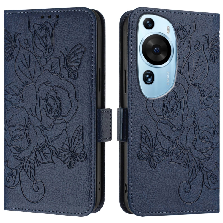 - 1x Funda de Cuero Antirrobo Huawei P60 Art Embossed Rose con RFID (Azul Oscuro)