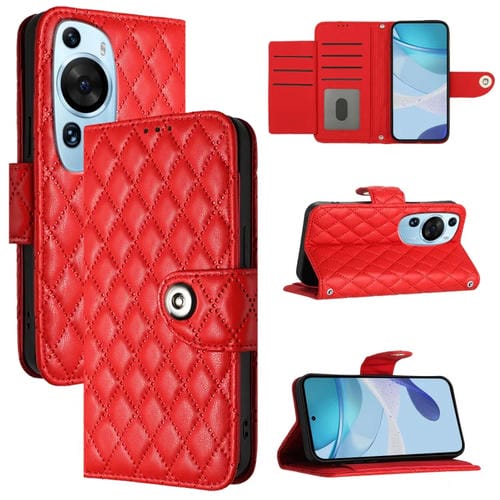 - 1x Funda de Cuero con Tapa para Huawei P60 Art Rhombic Texture con Cordón (Rojo)