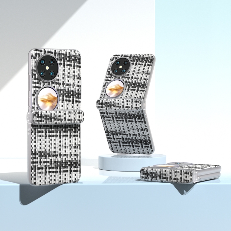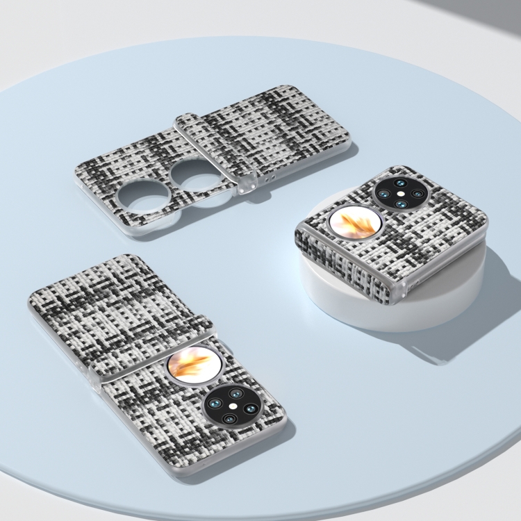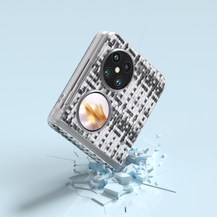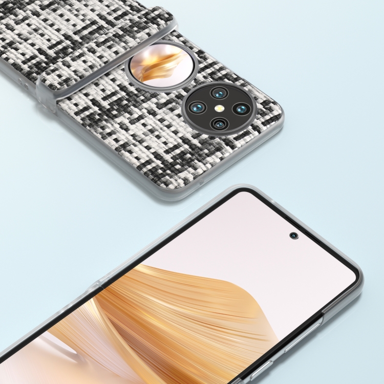 Funda 3 en 1 para Huawei Pocket 2 con Marco Translúcido Esmerilado y Textura Rómbica (Negro y Blanco)