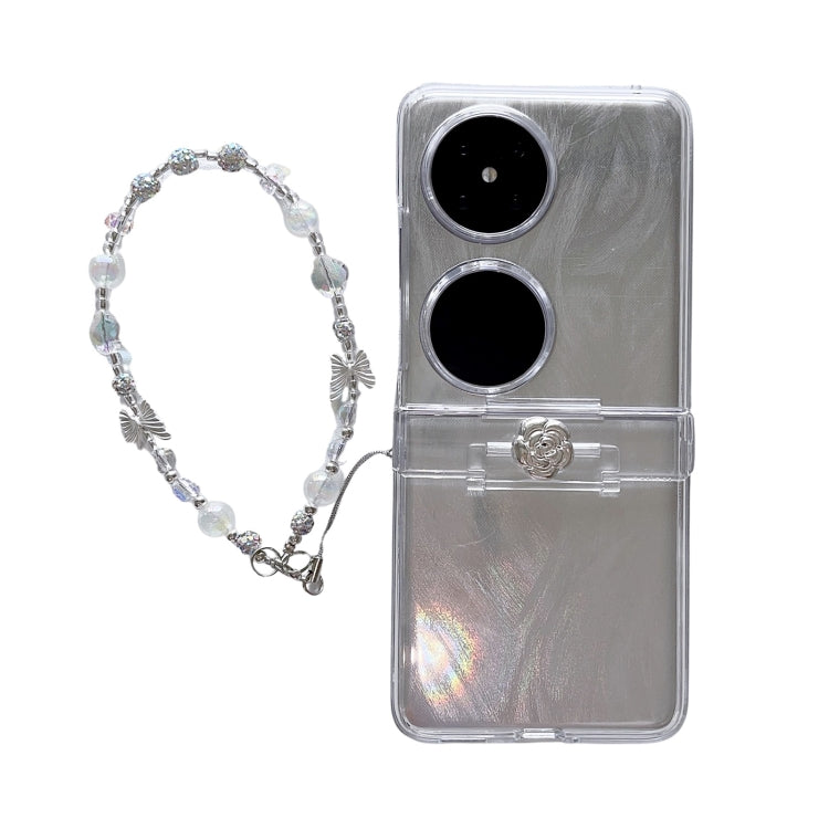 Funda para Huawei Pocket 2 Skin Feel PC Feather Gauze Glitter Paper Camellia con Pulsera (Transparente)