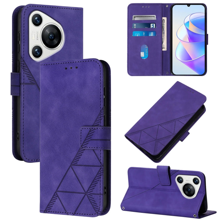 Funda de Cuero Para Huawei Pura 70 Crossbody con Tapa en Relieve 3D (Púrpura)
