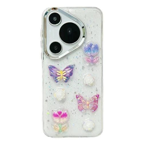 Funda para Huawei Pura 70 TPU con Mariposa de Cristal Colorida 3D (Flores de Mariposa)