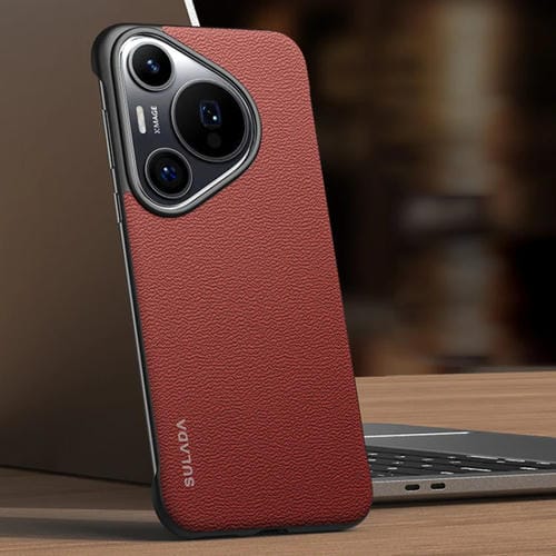 Funda para Huawei Pura 70 Sulada Capa Superior sin Marco de Cuero de Vaca + PC (Rojo)