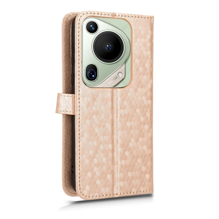 Funda de Cuero Huawei Pura 70 Ultra Honeycomb Dot Texture para Teléfono (Dorado)