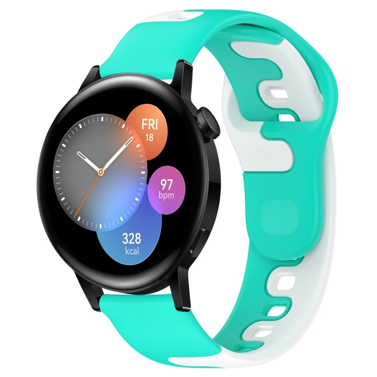 Correa de Silicona para Huawei Watch 3 22mm Doble Color (Cian + Blanco)