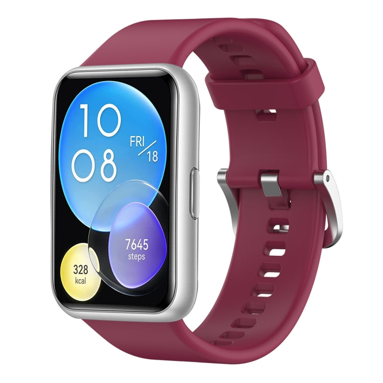 Para Huawei Watch Fit Correa de Reloj de Silicona de Color Sólido (Rojo Vino)
